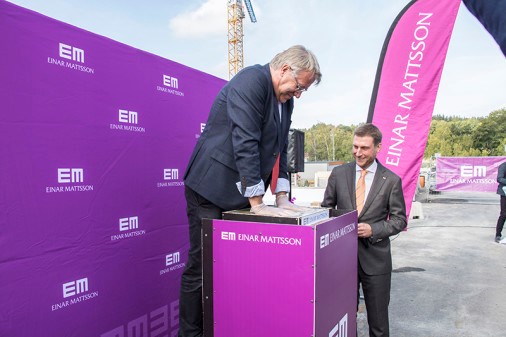 Under gårdagen genomförde Einar Mattsson tillsammans med biträdande finansborgarrådet Jan Valeskog och ett 40-tal den första gjutningen i kvarteret Koppången i Norra Djurgårdsstaden. Jan Valeskog förevigade tillfället genom att gjuta sina handavtryck i en betongplatta som byggs in i husen. Här uppför Einar Mattsson 130 energieffektiva hyresrätter för egen förvaltning. Hyresrätterna är projekterade för Miljöbyggnad Guld med solceller på taket, bergvärme och avloppsvärmeväxlare. Bostäderna beräknas vara inflyttningsklara 2019.