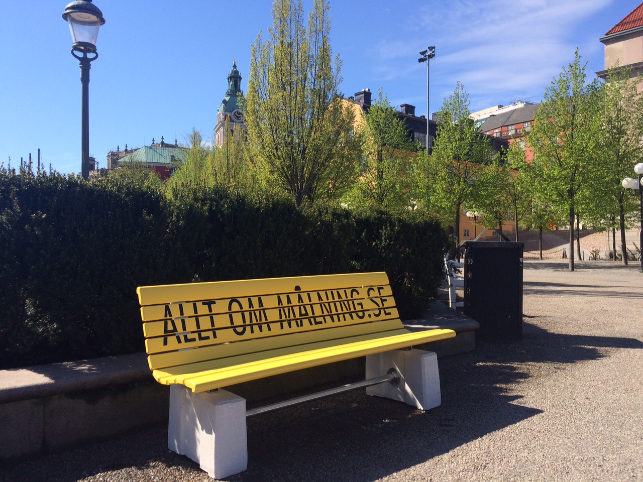 Lagom till vårens start placerades ett antal färgglada parkbänkar ut i folktäta Kungsträdgården. Bänkarna är utställda från och med 11 maj till 31 maj för att uppmärksamma kunskapssajten Alltommålning.se. Bakom sajten ligger Sveff, Sveriges Färgfabrikanters förening.