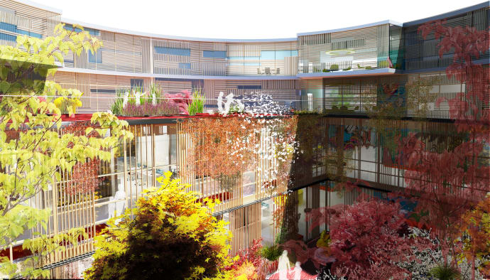 Byggnationen av NYT Hospital Herlev, Danmark, är i full gång. En av de två sjukhusbyggnaderna kommer ha en grönskande takterass med utsikt över naturområden. Något som kan förkorta vårdtiden. ”Det är allmänt känt inom arkitektbranschen att natur och grönska är välgörande för patienter”, säger Matthias Lehr från Henning Larsen arkitekter, som är en av arkitekterna bakom Nyt Hospital Herlev.