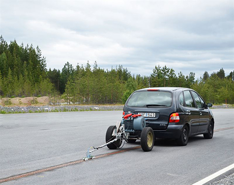 Bilden: Elbil med kopplingsarm testas på väg med elskena. Foto – Johan A Lundberg