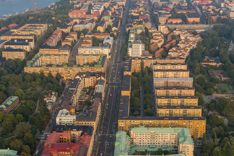 Bilden: Minskade utsläpp från vägtrafiken har lett till en bättre luftkvalitet, bland annat på Södermalm, Stockholm. Foto: Astrid Vågen/Wikimedia Commons.