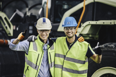 Joakim Käpynen, produktionsledare på Skanskas anläggning Vikan Kross och Uwe Müller, överordnad projektledare för Electric Site på Volvo CE