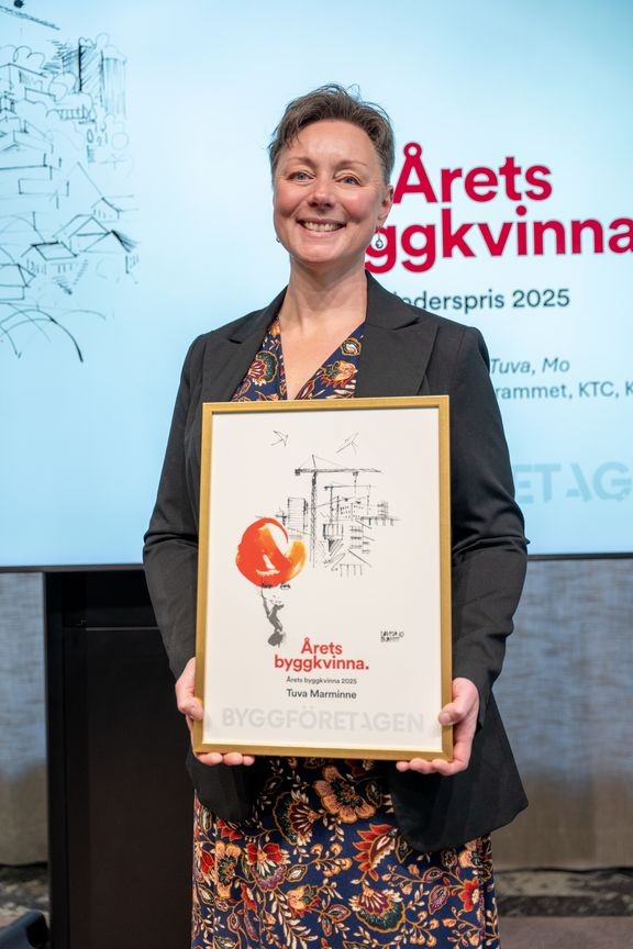 – Att bli utsedd till Årets byggkvinna är mycket hedrande för mig personligen, men det är också ett erkännande för alla kvinnor i produktion inom byggbranschen som varit med i några år. Det är glädjande att fler och fler yngre kvinnor väljer byggbranschen, men det är relativt få som jag, i 50-årsåldern, som kan visa att det finns möjligheter att ha ett långt yrkesliv här. Det behövs även äldre kvinnor som kan ge de yngre stöd och uppmuntran att fortsätta bryta normerna och visa att det går att till exempel bilda familj, utvecklas och även åldras i våra yrken, säger Tuva Marminne, Årets byggkvinna 2025.