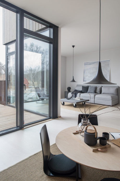 Den nya stadsdelen Norra Djurgårdsstaden befinner sig precis mellan stad och natur och i Zenhusen glider begreppen ute och inne ihop. Tack vare stora öppningar tar man med sig både dagsljuset och utsikten inomhus.