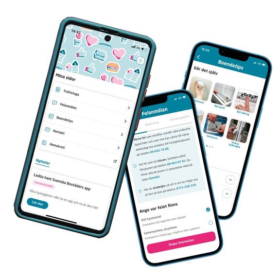Svenska Bostäders app finns att laddas ner i Appstore och i Google Play