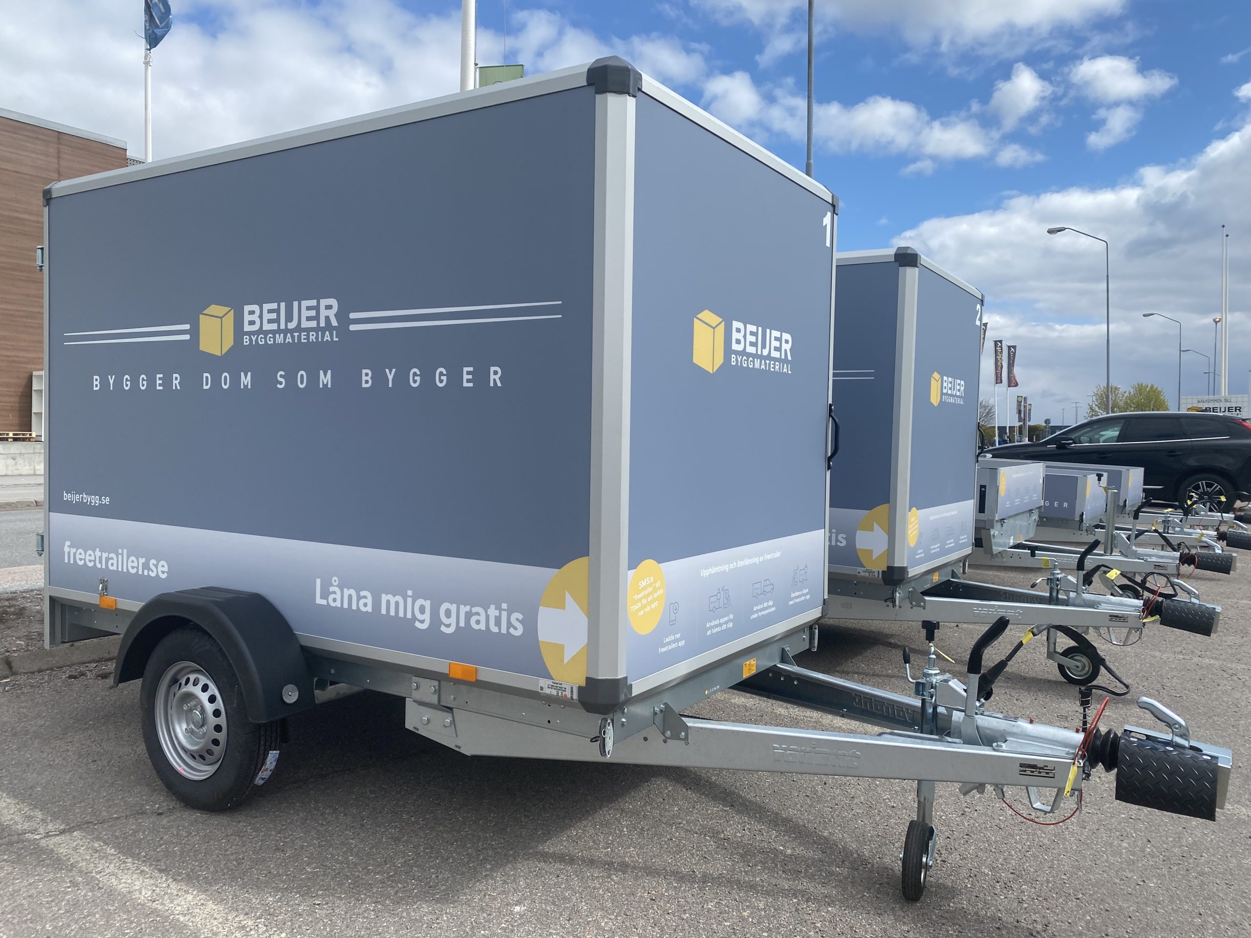 Från och med 29 april kommer fem släpvagnar att stå parkerade utanför Beijer Byggmaterial på Stångjärnsgatan 17-19. Släpvagnarna kan lånas utan krav på att handla i butiken. Genom ett Bluetooth-lås är släpen smidiga att hämta och återlämna utan bemanning och hanteringen sker i Freetrailers app.