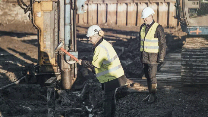 Bilden: Samhällsbyggnadsdirektör Charlotte Köhler byggstartar kvarter Gråalen. Fotograf: Hans Logren