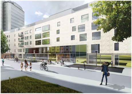 Det är den tidigare fyravåningar höga kamformade kontorskroppen där både Svenska Fotbollförbundet och AIK haft sina kontor som nu byggs om. Byggnaden får en ny fasad och kommer att bli ett välkommet inslag i området som förväntas få många barn med tanke på det stora antal bostäder som nu växer fram. Även det välkända höghuset som är mer känt som Dallasskrapan planeras att göras om till bostäder och planarbete för detta pågår.
