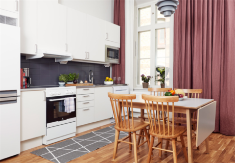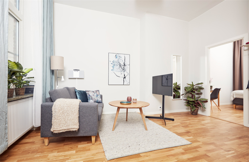 Lägenheterna är stilfulla och har inretts i moderna färgskalor från grått till svart med inslag av ek och vitt. Med säker stilkänsla har Företagsbostäder inrett lägenheterna för att passa kunderna. En av Företagsbostäders framgångsfaktorer är förmågan att matcha rätt företagslägenhet med rätt individ.