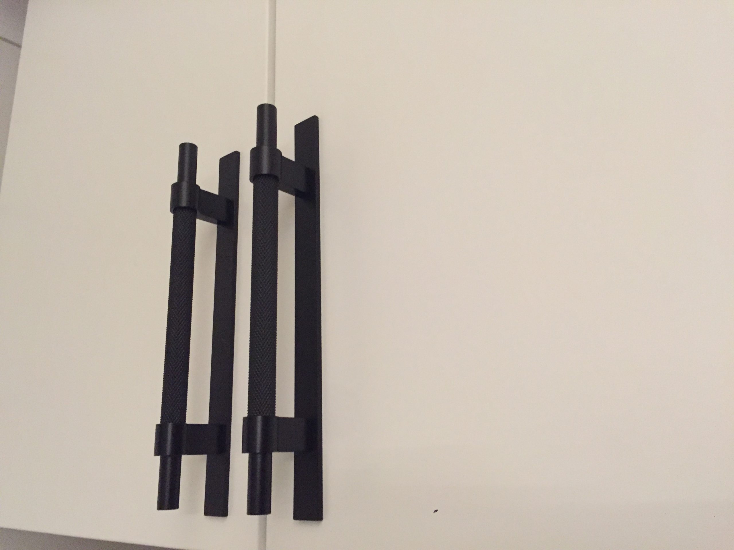 Varför inte låta ett par svarta beslag ta plats gentemot ett vitt badrumskåp och förstärka känslan av ett designat och exklusivt badrum? I exemplet här har vi bytt ut ett par, helt funktionella och dugliga, beslag mot Beslag Designs handtag Pitch med bricka, vilka ni kan läsa mer om här >>