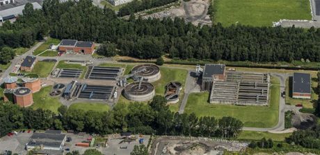 Flygfoto över centrala reningsverket i Kristianstad. Foto: Kristianstads kommun.