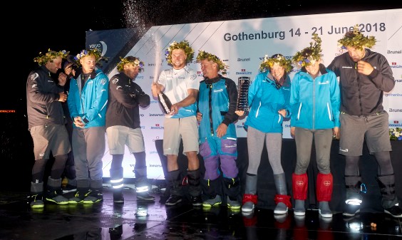 Team AkzoNobel firar att man anlände Göteborg som tredje båt!