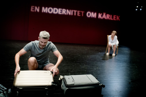 Bild: Tobias Borvin och Cecilia Borssén i föreställningen ”Anna och Mats bor inte här längre”. Fotograf: Malin Arnesson.