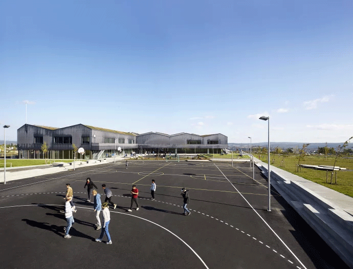 Whites förslag bygger på tydliga strukturer där rumsliga trösklar fungerar som naturliga gränser – dels mellan skola och samhälle men även mellan de olika delarna inom skolan. Skolan kombinerar traditionellt tydliga gränser och nyskapande pedagogiska miljöer, vilket leder till en strukturerad, översiktlig och trygg miljö för skolans elever och lärare.