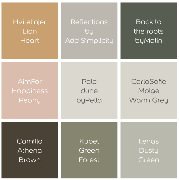 Samtliga signaturkulörer i Nordsjö Nordic Colours 2018: