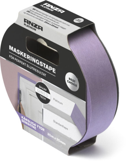 Platinum finns för både inom- och utomhusarbeten där det är viktigt med knivskarpa färgkanter. Det här är också en tejp som kan sitta kvar länge och passar därför perfekt om man inte hinner måla klart allt på en gång.