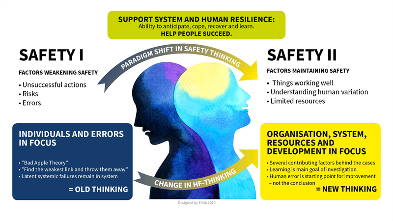 – Beaktande av mänskliga faktorer och mänskligt beteende är praktiska exempel på det nya säkerhetstänkandet (Safety II), där man inte enbart koncentrerar sig på mänskliga misstag, utan flyttar fokus till framgångsfrämjande faktorer och arbetsprocesser, säger Anna-Maria Teperi.