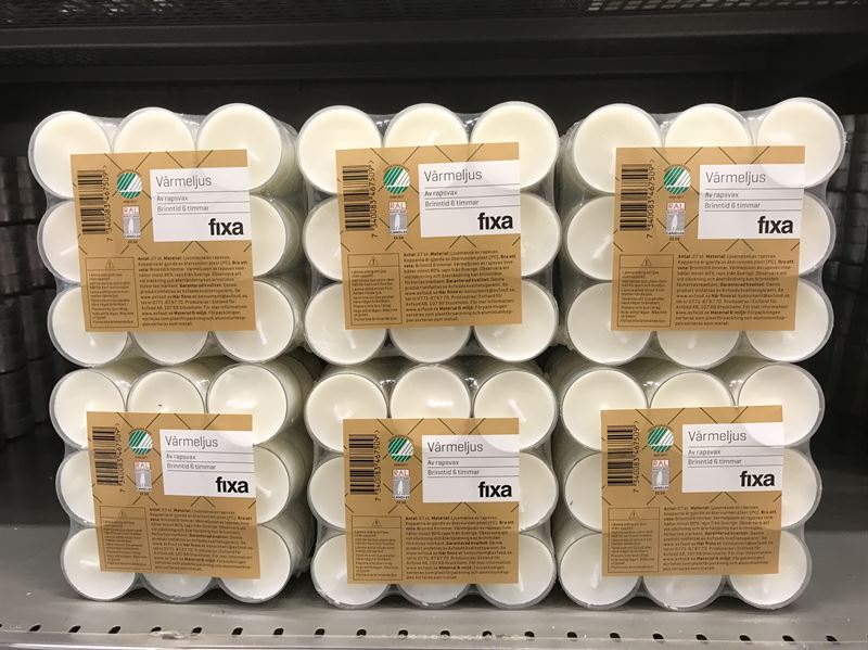 De nya värmeljusen säljs på Willys, Hemköp, Tempo och Eurocash. Brinntiden är 6 timmar och priset, för en förpackning med 27 värmeljus, ca 30 kr.