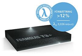 Utvecklingen av FOAMGLAS ® T3+ skapar nya möjligheter. Efter mer än 4 år av forsknings- och utvecklingsarbete har teamet vid FOAMGLAS® i Tessenderlo Belgien, som utgör en del av Pittsburgh Corning Group, tagit fram och applicerat en ny innovativ teknik. Resultatet är att isoleringsförmågan för FOAMGLAS® T3+ har förbättrats med mer än 12 procent jämfört med föregångaren T4+ (från ett lambdavärde på 0,041 till 0,036 W/m2K).
