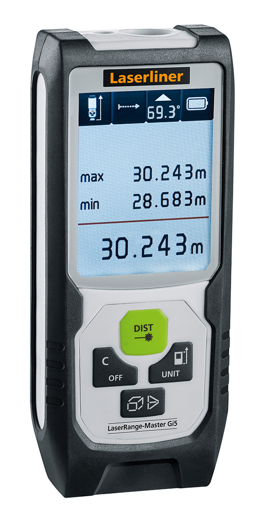 Laserliner introducerar ny avståndsmätare med grön laserpunkt framtill i DLD utförande som ger en hög kvalité med en extremt synbar laserpunkt vid mätningen. LaserRange-Master Gi5 ger en precisionsmätning med ett exakt fastställande av längd genom en klar och väl synlig laserpunkt.
