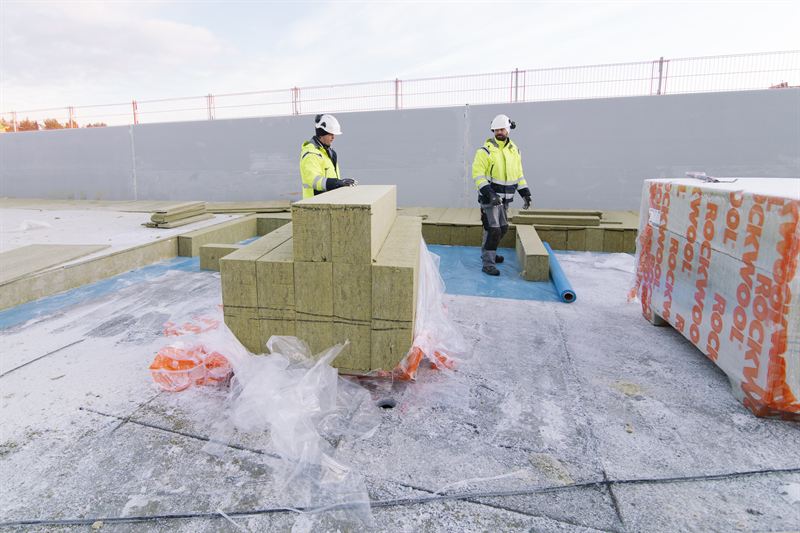 – Det här är ett oerhört stort och komplext bygge och som vid många andra byggnationer ska det gå snabbt och ändå klara de högt ställda kraven. När Rockwool presenterade Toprock CTF och visade hur man löst takisolering och fall i samma produkt med tidseffektiv läggninge som resultat, kändes det som ett riktigt bra alternativ. Vi har nu lagt ungefär halva taket och är så här långt mycket nöjda, säger Per Edström, på Taktech, som är takentreprenör för bygget.