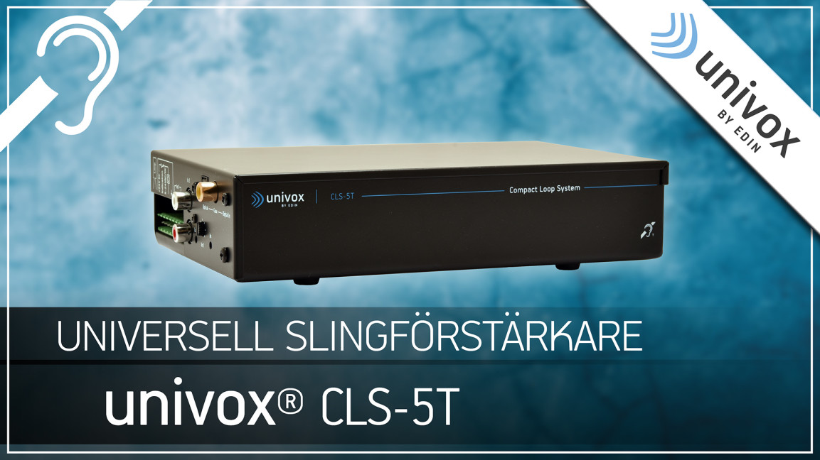 Univox CLS-5T är en universiell, kompakt och kraftfull slingförstärkare med digital ingång anpassad och designad för trådlös lyssning genom hörapparat med T-spole. CLS-5T passar utmärkt att använda i både hissar, bussar, i taxi, spårvagn eller båt, såväl som i stora TV-/sällskapsrum och konferensrum. En rad ingångar, inklusive digitala och koaxiala, möjliggör enkel integration med valfritt ljudsystem. CLS-5T kan driftsättas genom antingen 110-240 VAC eller 12-24 VDC (batteridrift/backup), vilket stöttar ett brett användningsområde,
