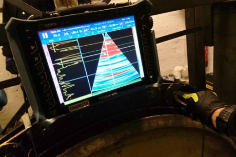 AFA Fastigheter anlitade också Inspecta för att utföra provningar av infästning till hisskorgarna och av 140 nitar till drivkedjorna. Kontrollen gjordes med Phased Array, en avancerad ultraljudsprovningsteknik som används för att hitta defekter på allt från en stumsvets till komplexa geometrier. Provningsresultaten kom tillbaka utan anmärkning.