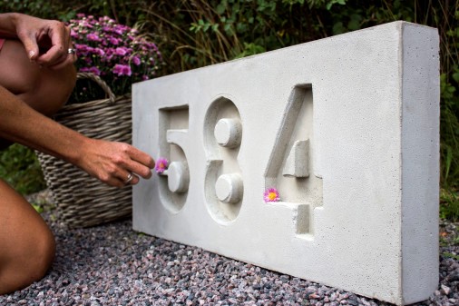 Gjutet i betong blir husnumret en unik och hållbar dekoration till ditt hus samtidigt som det underlättar för besökare att hitta rätt. Genom att skapa det själv får du det snyggaste och definitivt mest personliga husnumret på gatan. Det står sig dessutom väl mot både väder och vind under lång tid framöver.