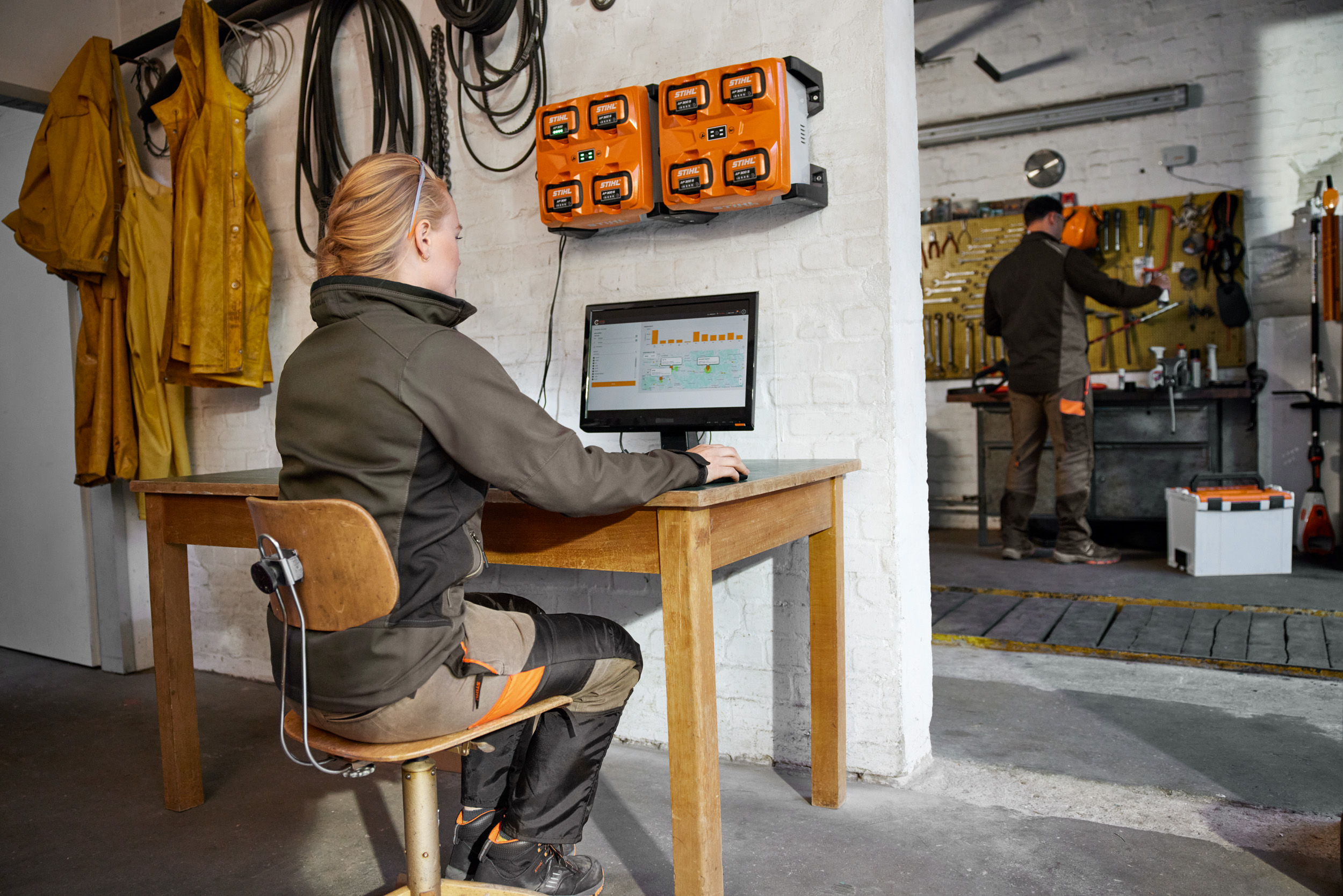 problem att ladda batterierna i verkstaden eller i arbetsfordon där 230 V är tillgängligt.
