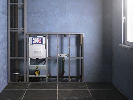Geberits installationsväggar går att få prefabricerade eller att köpa som lösa delar att bygga ihop själv. Oavsett får man en snygg, modern och flexibel lösning som enkelt kan anpassas efter hur man vill att badrummet ska se ut.