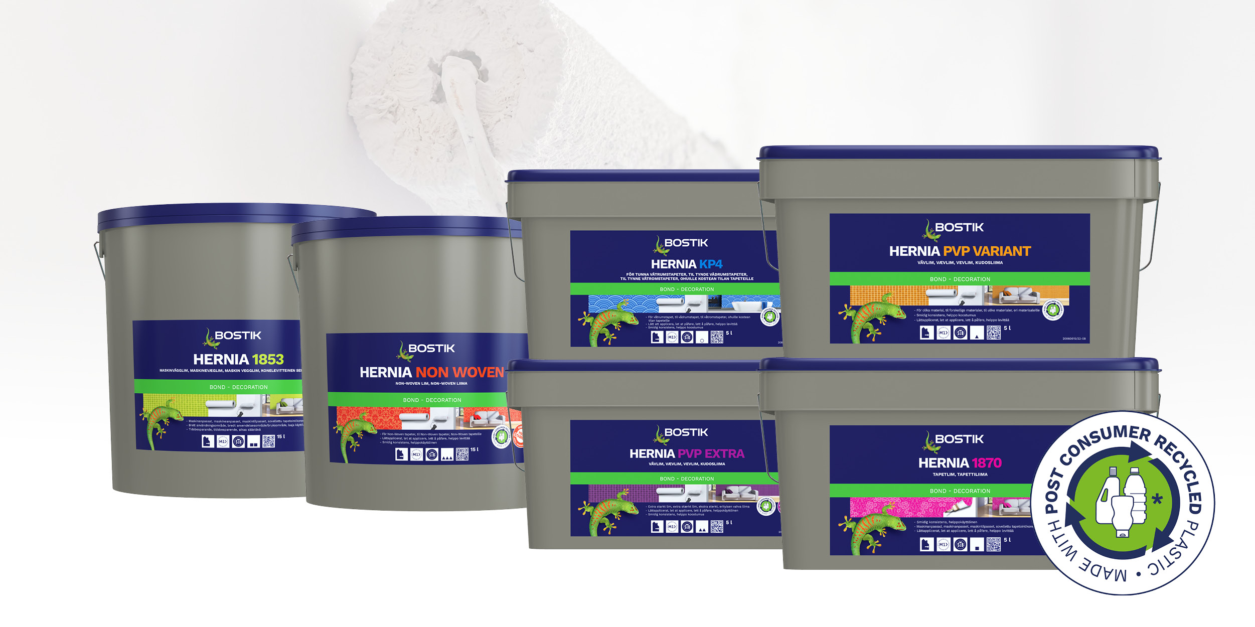 Bostik uppdaterar nu sitt rektangulära hinksortiment för vägglim. De nya hinkarna har genomgående bättre kvalitet och är framtagna med utökad hänsyn till arbetsergonomi och miljö. Uppdateringen gäller både produkterna i Herniaserien, som riktar sig till professionella hantverkare, och produkterna i Universalserien, som riktar sig till hemmafixaren.