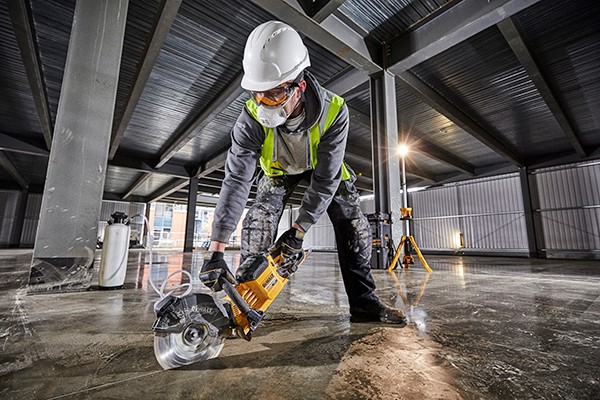 Nu presenterar Dewalt ännu ett batteridrivet proffsverktyg i 54V FLEXVOLT-serien. En ny 230 mm banbrytande betongkap för krävande kapning och spårning i betong samt kapning i metall.